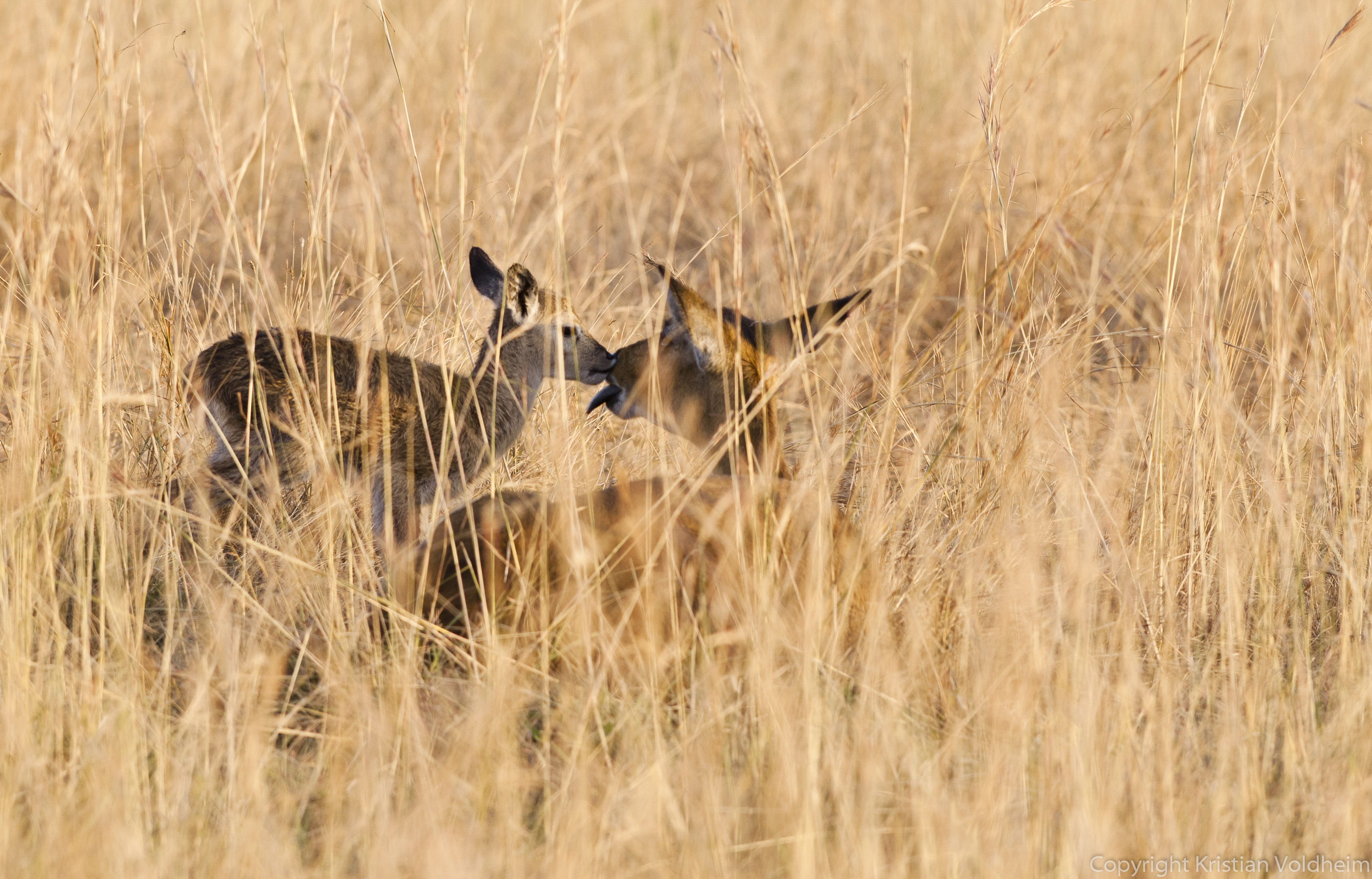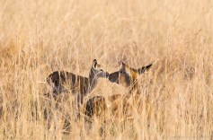 Dag 3 i Murchison fikk vi en fantastisk soloppgang. Og etter å ha fotografert soloppgangen, fikk vi enda en fantastisk opplevelse. En nyfødt kob-antilope tok sine første ustø skritt i morgenlyset, mens mora slikket kalven ren. Det ble en brukbar bildeserie, og her er tre bilder fra denne opplevelsen.