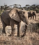 Jeg har allerede skrevet to innlegg om Samburu nasjonalpark, og bildene nedenfor er også fra samme sted. Vi hadde flotte opplevelser der hver dag, og møtene vi hadde med elefantene var fantastiske. Jeg har tatt med to bilder fra samme sekvens hvor det første er rett fra kamera og det andre «fremkalt» til det ferdige resultatet. Jeg ønsker å vise hva man kan hente ut fra bilder som i utgangspunktet lider under harde kontraster, skarp sol og veldig mørke skyggepartier. Jeg bruker Lightroom for redigering av bildene mine, og her har jeg lysnet skyggepartiene ganske mye. Jeg har også økt «clarity» på himmelen og på dyrene for å fremheve konturene. Jeg ønsket også å tone ned fargene i bildet, og har derfor dratt ned «vibrance» ganske mye, men økt bruntoner og grønntoner etterpå fra HSL fanen i Lightroom.