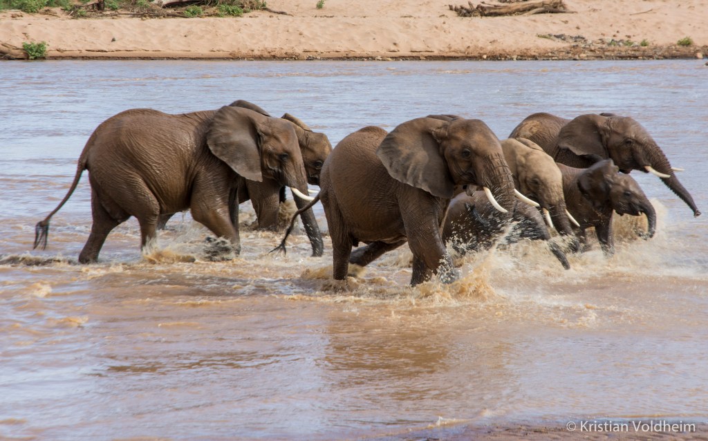 Elefanter krysser elven i Samburu
